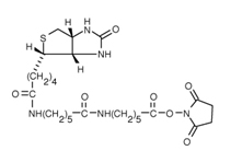 The amine-reactive biotin-XX, SE can be used to attach this important hapten to biomolecules of interest for subsequent detection with streptavidin, avidin or NeutrAvidin® biotin-binding protein. This molecule has a 14 atom spacer designated by "XX" to facilitate reactivity with the molecule and eventual accessibility of the biotin to avidin or streptavidin.