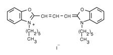 DiOC6(3) (3,3'-Dihexyloxacarbocyanine Iodide) is a cell-permeant, green-fluorescent, lipophilic dye that is selective for the mitochondria of live cells, when used at low concentrations. At higher concentrations, the dye is selective to stain the endoplasmic reticulum.