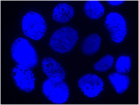 • Excited by UV light and emits blue fluorescence at 460 nm when bound to DNA
