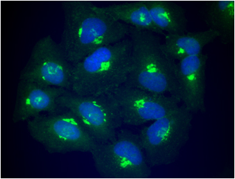 The Golgi is an organelle found in most eukaryotic cells, where proteins, lipids, and carbohydrates, are prepared for either secretion from the cell or use by other organelles within the cell. The Golgi contains a set of glycosylation enzymes that attach various sugar monomers to proteins as the proteins move through the apparatus. ABP Biosciences offers a cell-permeant probe that selectively stain the Golgi complex for lipid metabolism and trafficking studies.